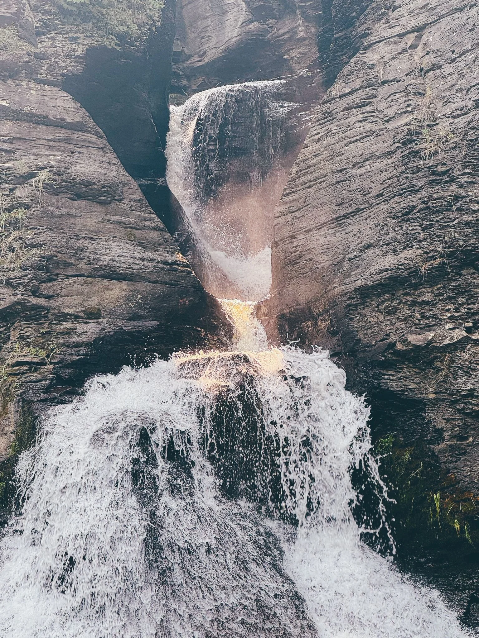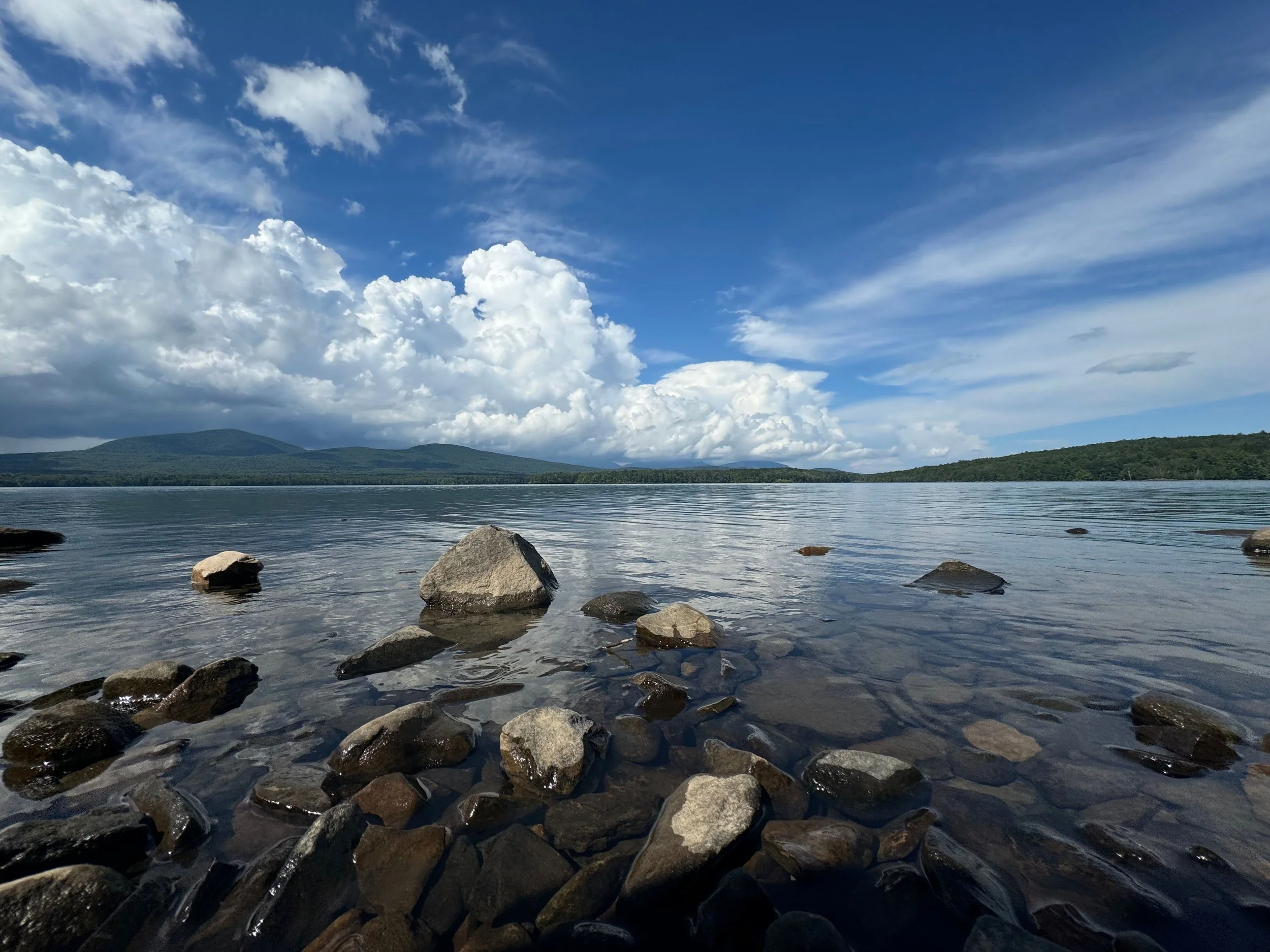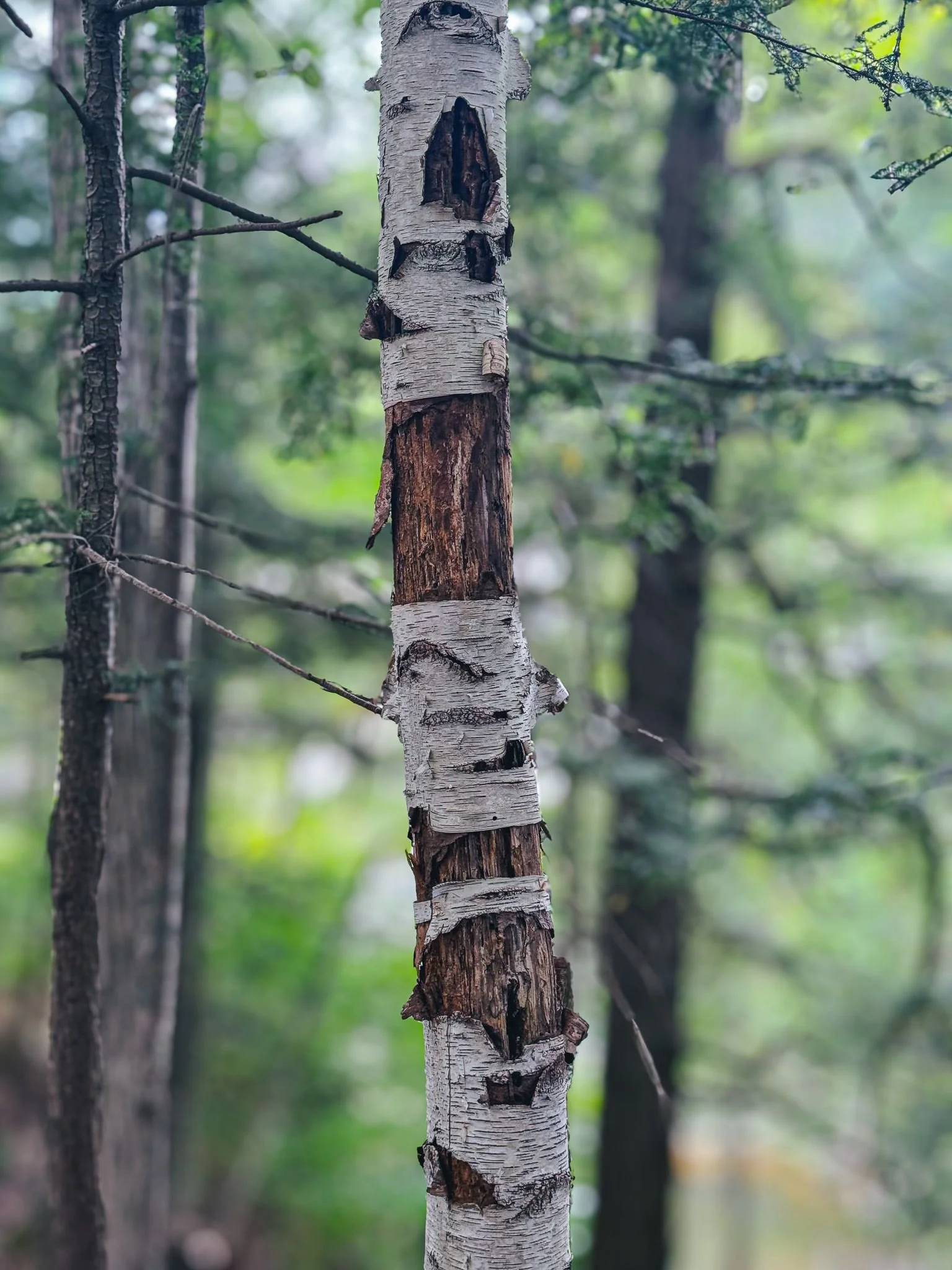 The experience of time savored in nature, soaking in the sensations that are foreign in dense urban life — slippery stones beneath barefeet in a cold watering hole; a fire pit crackling in an open field, roasting salmon with maple syrup from the local farm; breathing in mountain air crisp and clean, a refreshing ten degrees cooler than summer back home — is wholesome, nourishing, in a way that fuels the body, mind, soul. Hands resting on bark, gnarled and storied, head tilted heavenward, expression awestruck. A spirituality that descends, a rootedness, that you can tuck in your pocket and reach for as you lay your head upon your pillow back home, where lit squares, a grid of pale blue and amber, stand in for stars and the trundling carts drown out the crickets.